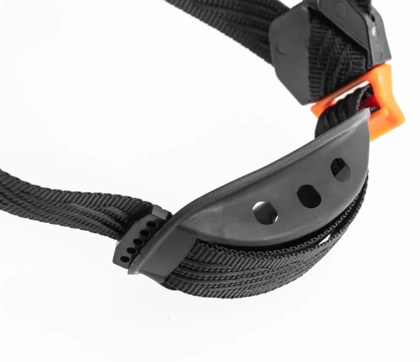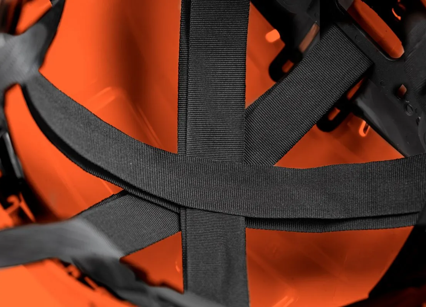 - KONSTRUKCJA: wytrzymała skorupa z tworzywa ABS, regulacja rozmiaru za pomocą pokrętła, 6-punktowa więźba 6-punktowa z taśm parcianych, 3-punktowy pasek podbródkowy z mechanizmem spełniającym normę (150–250 N), potnik - wykonany z pianki EVA, pokryty miękką tkaniną typu mesh, regulowana wentylacja w górnej części skorupy, chwyty do montażu akcesoriów (przyłbice, okulary, nauszniki, latarki), krótki daszek nieograniczający widoczności, wyjątkowo niska waga – jedynie 310 g, kolor pomarańczowy