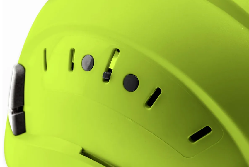 - KOMPATYBILNOŚĆ: z wieloma elementami środków ochrony indywidualnej, dzięki uchwytom i otworom montażowym można bez problemu zintegrować kask z przyłbicą, okularami ochronnymi, nausznikami czy latarką czołową