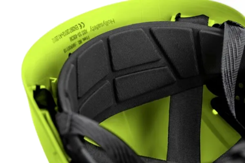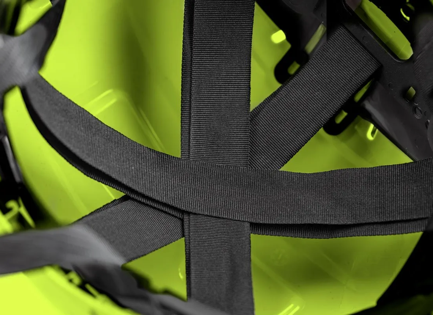 - KONSTRUKCJA: wytrzymała skorupa z tworzywa ABS, regulacja rozmiaru za pomocą pokrętła, 6-punktowa więźba 6-punktowa z taśm parcianych, 3-punktowy pasek podbródkowy z mechanizmem spełniającym normę (150–250 N), potnik - wykonany z pianki EVA, pokryty miękką tkaniną typu mesh, regulowana wentylacja w górnej części skorupy, chwyty do montażu akcesoriów (przyłbice, okulary, nauszniki, latarki), krótki daszek nieograniczający widoczności, wyjątkowo niska waga – jedynie 310 g, kolor żółty Hi-Vis
