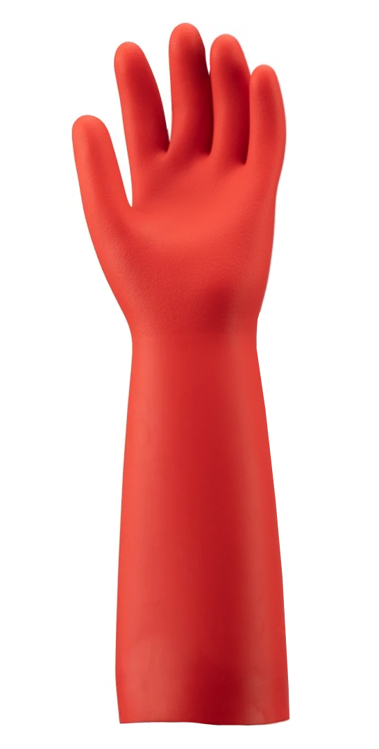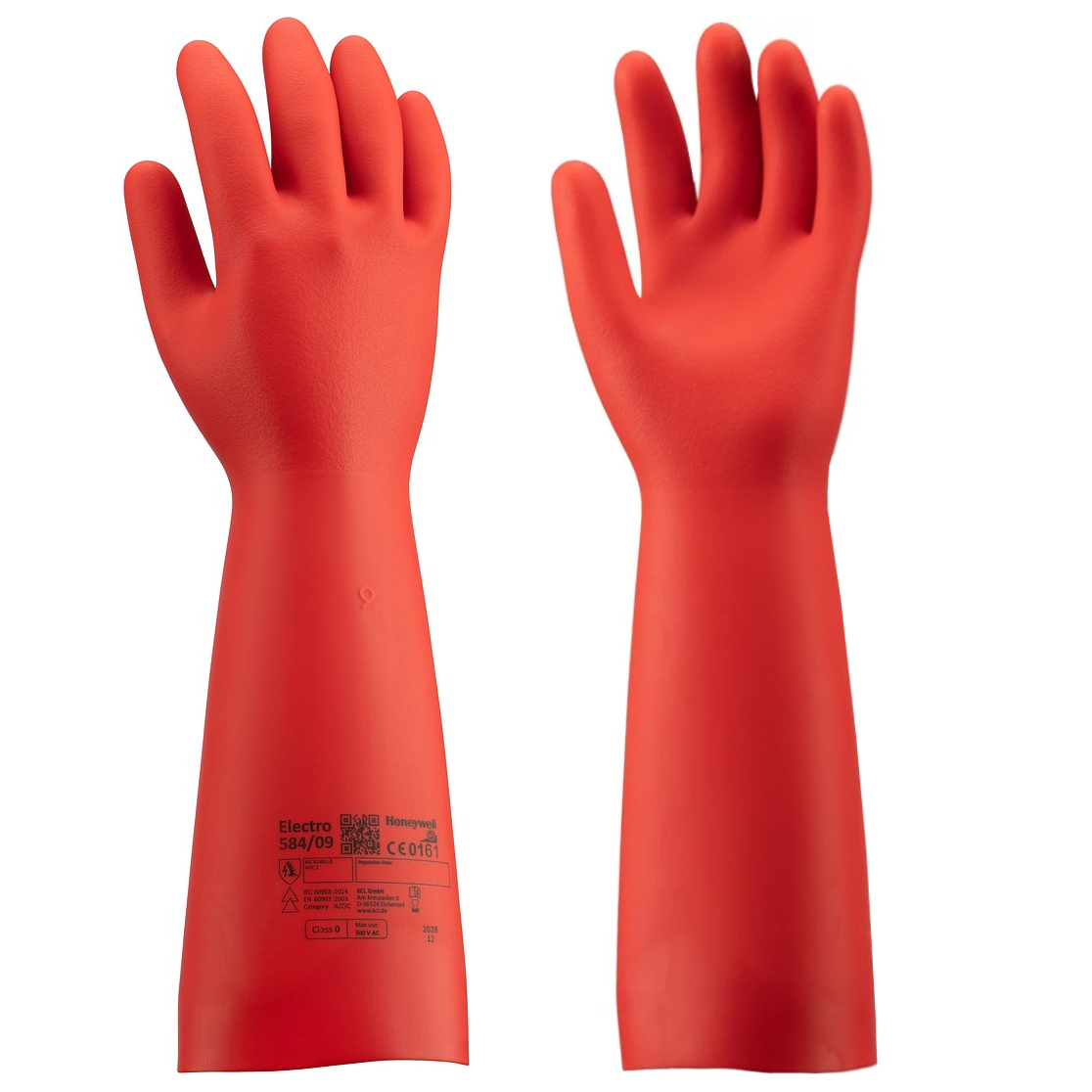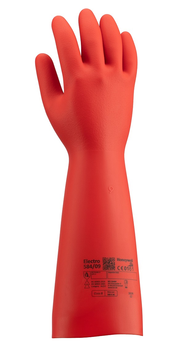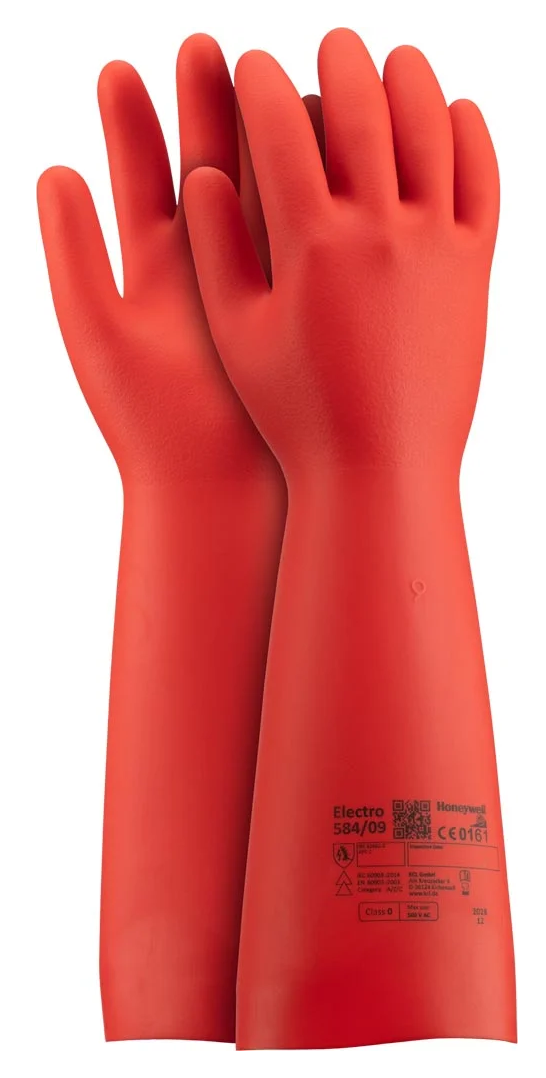 RĘKAWICE ELEKTROIZOLACYJNE KCL ELECTRO 584. Przeznaczone do pracy przy instalacjach elektrycznych, transformatorach, generatorach, pojazdach elektrycznych, telekomunikacji, energetyce wiatrowej, ratownictwie i usługach awaryjnych. Oferują ochronę zarówno przed porażeniem prądem, jak i skutkami termicznymi łuku elektrycznego (oparzenia, pęcherze, uszkodzenia skóry). Główne cechy: Bez silikonu - brak silikonu eliminuje ryzyko zanieczyszczenia powierzchni lakierowanych (np. w branży motoryzacyjnej)/ Dobre dopasowanie i komfort pracy - wygodne i elastyczne, co ułatwia pracę z małymi częściami i zmniejsza zmęczenie dłoni, dzięki temu pracownicy mogą wykonywać swoją pracę dłużej i wydajniej, nie odczuwając zmęczenia ani bólu/ Lepszy chwyt i zręczność - teksturowana powierzchnia dłoni i palców zapewnia lepszy chwyt i kontrolę, pomagając pracownikom zwiększyć produktywność, wydajność i zadowolenie/ Stworzone, aby wytrzymać napięcie - wykonane z naturalnej gumy, mają właściwości elektryczne od klasy 00 do klasy 0, co oznacza, że mogą wytrzymać napięcia do 1000 V AC lub 1500 V DC, rękawice Electro są testowane pod kątem odporności na łuk elektryczny, dzięki czemu użytkownicy mogą czuć się chronieni przed zagrożeniami termicznymi spowodowanymi łukiem elektrycznym oraz mogą uniknąć oparzeń, pęcherzy i uszkodzeń skóry/ Spełniają standardy - spełniają surowe przepisy rządowe i standardy jakości obowiązujące w regionach europejskich, spełniając normy EN 60903 i IEC 60903. Kolor: czerwony. Rozmiar: 7 - 11. Długość (mm): 360 mm . Grubość całkowita: 1,2 mm. Materiał: naturalny lateks (NR). Konstrukcja: model pięciopalcowy, długi, prosty mankiet, czerwony kolor, materiał - naturalny lateks, bez silikonu, teksturowana powierzchnia dla lepszego chwytu. Zastosowanie: firmy energetyczne i instalacyjne, warsztaty elektryczne we wszystkich gałęziach przemysłu, prace instalacyjne, konserwacyjne i naprawcze obejmujące napięcia do 1000 V, naprawa urządzeń energetyki przesyłowej, produkcja urządzeń elektrycznych - montaż, testowanie lub naprawa urządzeń, komponentów lub systemów elektrycznych, motoryzacja, energetyka, energetyka wiatrowa i energetyczna - instalacja, konserwacja lub obsługa urządzeń, telekomunikacja - praca z kablami, masztami lub antenami, warsztaty samochodowe, służby ratunkowe i straż pożarna.