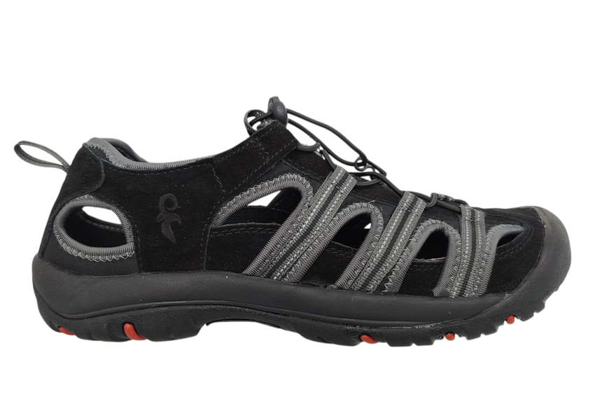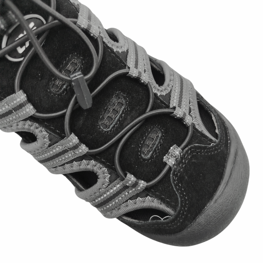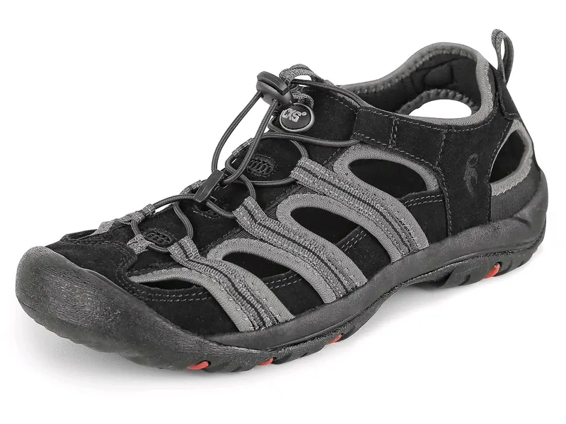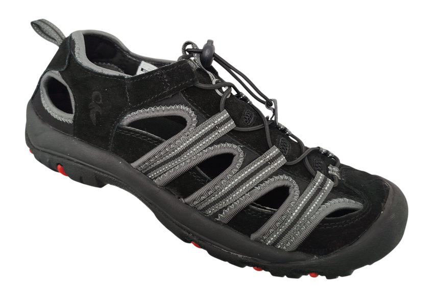 - KONSTRUKCJA: sandały sportowe letnie, konstrukcja zwiększająca komfort ruchu wykonane z połączenia skóry bydlęcej i materiału tekstylnego z miękką tekstylną podszewką, elastyczna gumka do regulacji szerokości, lekkie i wygodne zakładanie, podeszwa phylon/guma – lekka, amortyzująca i antypoślizgowa, elementy odblaskowe