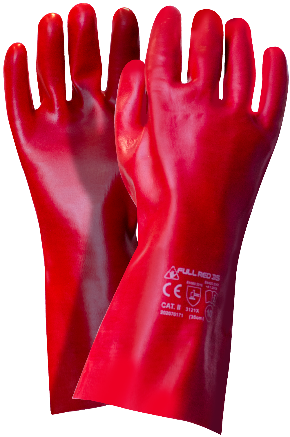 RĘKAWICE WORKLINK FULL RED PVC 35 - 10. Rękawice ochronne wykonane na wkładzie z dzianiny bawełnianej, w całości powlekane warstwą PVC w kolorze czerwonym, zakończone oblanym mankietem, dzięki czemu rękawica osiąga długość 35cm. Miękka i elastyczna powłoka pozwala na manualny chwyt. Kolor: czerwony. Rozmiar: 10. Materiał: podkład - dzianina bawełniana, powłoka - PVC (odporna na smary, tłuszcze, oleje, wodę). Konstrukcja: model pięciopalcowy na podkładzie dzianinowym, w całości pokryty PVC w kolorze czerwonym, długi prosty mankiet, całkowita długość z mankietem - 35 cm. Zastosowanie: doskonałe do pracy w mokrym środowisku, odporne na detergenty, środki czyszczące, stosowane przy obsłudze maszyn, przez mechaników, używane w łowiectwie, rybołówstwie.