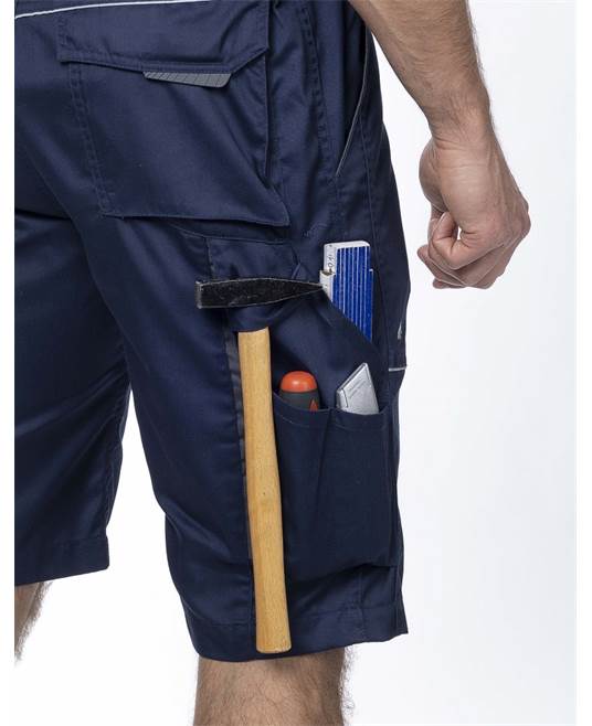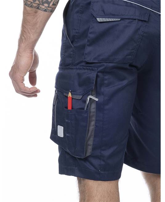 KRÓTKIE SPODENKI ARDON® SUMMER. Spodenki robocze o prostej konstrukcji, chronią przed minimalnym ryzykiem. Idealnie sprawdzą się w okresie wiosenno-letnim podczas sprzyjającej pogody i przy zajęciach, które nie wymagają kompletnego osłonięcia użytkownika. Warianty kolorystyczne: biały, szary, ciemno-szary, niebieski, ciemno-niebieski, khaki. Rozmiar: 46-64. Materiał: 65% poliester, 35% bawełna, 200 g/m2. Konstrukcja: krótkie spodenki, wygodne zapięcie na suwak i guzik, dopasowanie dzięki gumie w pasie, praktyczne kieszenie z przodu, w tylnej części i wielofunkcyjne kieszenie miechowe na narzędzia po bokach nogawek, w tym kieszeń na komórkę o rozmiarze do 5,6“, szerokie szlufki na pasek, elementy odblaskowe. Zastosowanie: monterzy, budowlańcy, magazynierzy, pracownicy hal montażowych i produkcyjnych, nawet pracownicy drogowi.