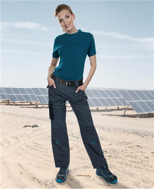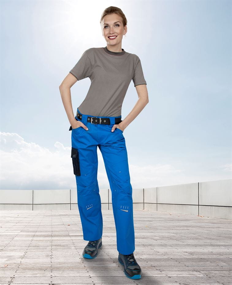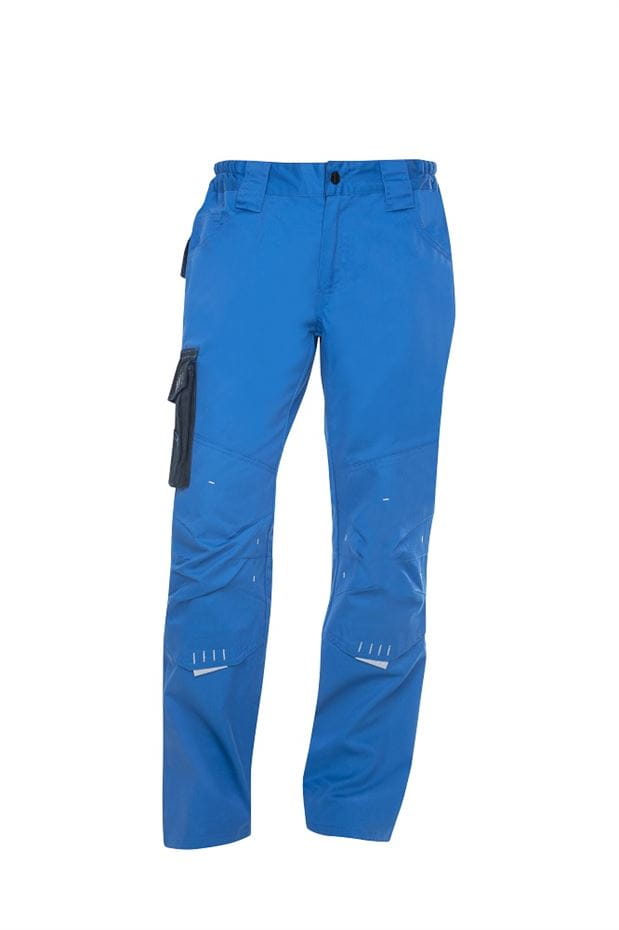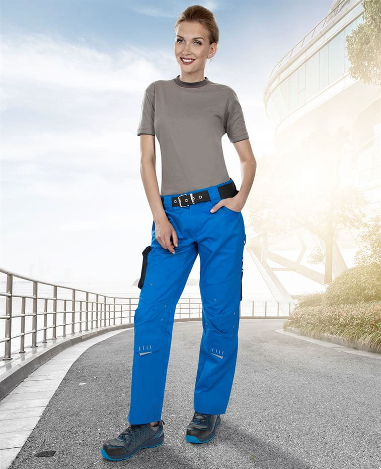 SPODNIE DO PASA ARDON® 4TECH 02 DAMSKIE. Uniwersalne spodnie robocze damskie. Warianty kolorystyczne: niebiesko-czarny, szaro-czarny. Rozmiar: 36-58. Materiał: 65% poliester, 35% bawełna, splot diagonal, 240 g/m2. Konstrukcja: spodnie ogrodniczki damskie, elastyczny pas, szlufki do paska, główne zapięcie na zamek i guzik, wielofunkcyjne kieszenie - dwie przestrzenne tylne kieszenie, dwie pojemne kieszenie przelotowe i boczna kieszeń kryta plisą na nogawce do narzędzia, elementy odblaskowe, wzmocnione kolana z kieszeniami na nakolanniki. Zastosowanie: do użytku roboczego.