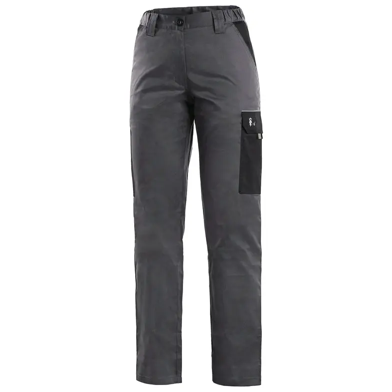 SPODNIE DAMSKIE DO PASA CXS PHOENIX MONETA. Damskie spodnie robocze z lekkiego materiału, z elastycznym pasem, praktycznymi kieszeniami i elementami odblaskowymi zwiększającymi widoczność. Dzięki lekkiej gramaturze nadaje się do pracy nie tylko latem, ale również przez cały rok w pomieszczeniach ogrzewanych. Kolor: szaro-czarny. Rozmiar: 36-58. Materiał: 65% poliester, 35% bawełna, 190 g/m2. Konstrukcja: damski krój, spodnie do pasa, główne zapięcie na zamek kryty plisą i guzik, pas ze szlufkami na pasek, z boku wszyta guma, kieszenie klinowe z przodu, kieszeń boczna z patką, kieszeń metr taśmowy / składany, zwykła kieszeń z tyłu, elementy odblaskowe. Zastosowanie: budownictwo, inżynieria, przemysł lekki, przemysł samochodowy, logistyka, magazyn, spedycja, autoserwisy, utrzymanie, montaż, rolnictwo, ogród, praktykanci, hobby.