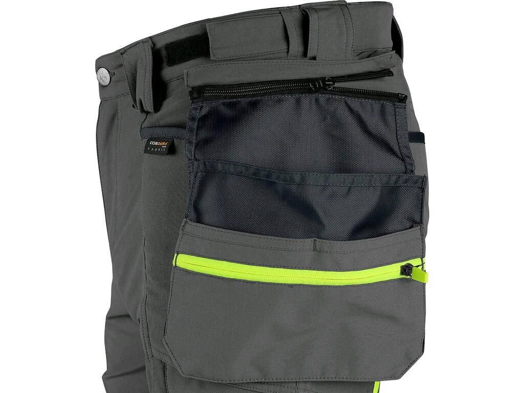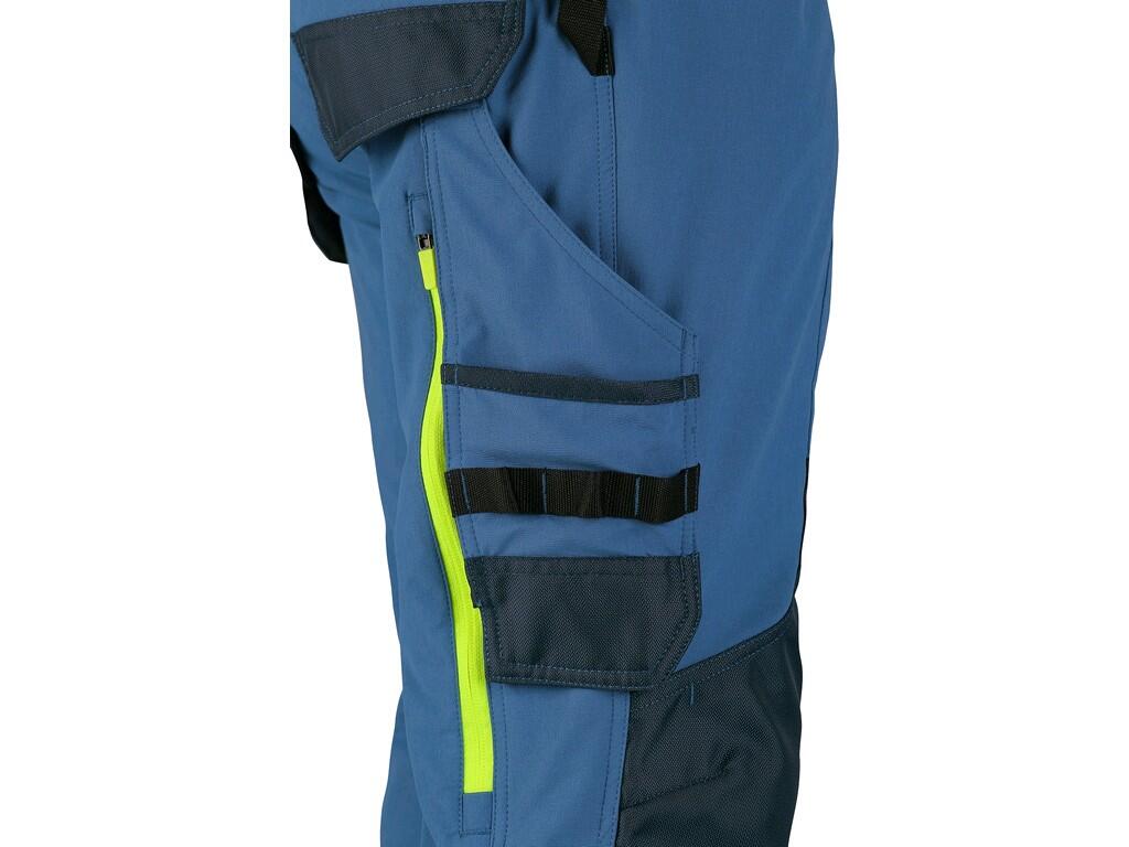 - KONSTRUKCJA: spodnie robocze o węższym, nowoczesnym kroju z kontrastowymi dodatkami i odblaskowymi elementami, tkanina 4-way stretch rozciągliwa w czterech kierunkach, elastyczny pas z możliwością regulacji rozmiaru i szlufkami na pasek, 2 przednie kieszenie, 2 odpinane kieszenie na narzędzia wzmocnione materiałem CORDURA®, kieszeń na zamek na udzie z miejscem na ID kartę, wielofunkcyjna kieszeń boczna, 2 tylne kieszenie na dole wzmocnione materiałem CORDURA®, wentylacja na zamek na udach, kolana wzmocnione materiałem CORDURA® z możliwością wstawienia nakolanników, dolna część nogawek jest wzmocniona materiałem CORDURA®, spodnie są wyposażone w system EASY-PROLONG, który umożliwia łatwe przedłużenie spodni do wyższej sylwetki