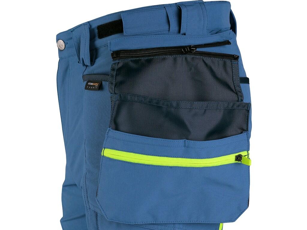 SPODNIE DO PASA CXS NAOS. Męskie spodnie robocze o węższym, nowoczesnym kroju z kontrastowymi dodatkami i odblaskowymi elementami. Wygodne w noszeniu, dobrze dopasowane, wytrzymałe. Konstrukcja 4-way stretch pozwala materiałowi rozciągać się we wszystkich czterech kierunkach, a tym samym umożliwia łatwy i swobodny ruch. Wysoka zawartość nylonu gwarantuje zdolność do szybkiego schnięcia. Warianty kolorystyczne: niebiesko-czarny+HV żółty (406), brązowo-czarny+HV pomarańczowy (530), szaro-czarny+HV żółty (702), szaro-czarny+niebieski (706). Rozmiar: 46-64. Materiał: materiał podstawowy - 93% nylon, 7% elastan, CORDURA - 100% nylon, materiał dodatkowy - 100% poliester. Konstrukcja: spodnie robocze o węższym, nowoczesnym kroju z kontrastowymi dodatkami i odblaskowymi elementami, tkanina 4-way stretch rozciągliwa w czterech kierunkach, elastyczny pas z możliwością regulacji rozmiaru i szlufkami na pasek, 2 przednie kieszenie, 2 odpinane kieszenie na narzędzia wzmocnione materiałem CORDURA®, kieszeń na zamek na udzie z miejscem na ID kartę, wielofunkcyjna kieszeń boczna, 2 tylne kieszenie na dole wzmocnione materiałem CORDURA®, wentylacja na zamek na udach, kolana wzmocnione materiałem CORDURA® z możliwością wstawienia nakolanników, dolna część nogawek jest wzmocniona materiałem CORDURA®, spodnie są wyposażone w system EASY-PROLONG, który umożliwia łatwe przedłużenie spodni do wyższej sylwetki. Zastosowanie: przemysł maszynowy, budownictwo, przemysł lekki, przemysł motoryzacyjny, logistyka, magazyn, spedycja, serwis samochodowy, konserwacja, montaż, rolnictwo, ogród.
