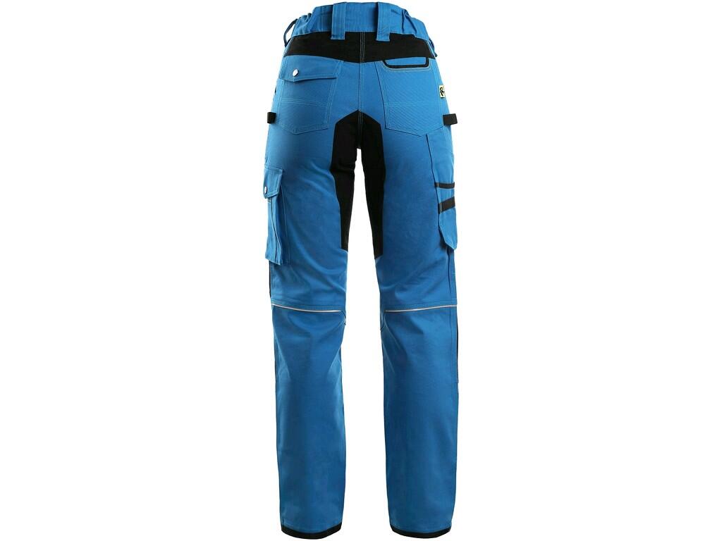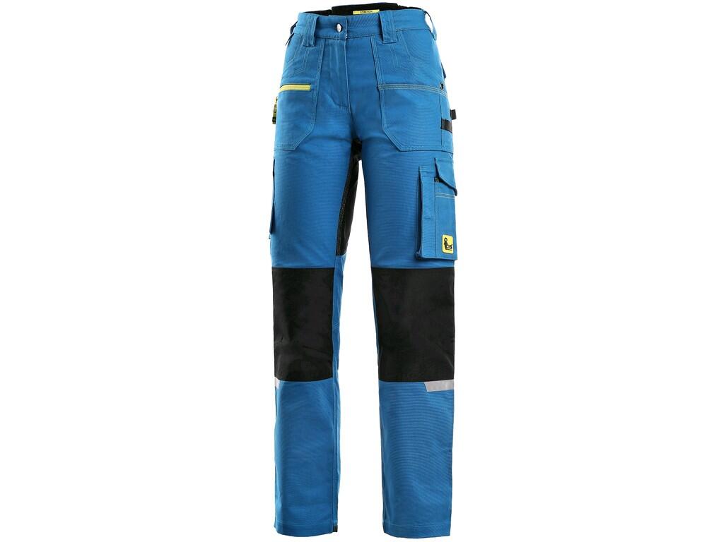 SPODNIE DO PASA CXS STRETCH DAMSKIE. Damskie spodnie robocze, wykonane z tkaniny stretch zapewniającej swobodny ruch. Kolor: niebiesko- czarny. Rozmiar: 38-58. Materiał: canvas 98% bawełna, 2% elastan, 250 g/m2. Konstrukcja: wygodny fason z podwyższonym karczkiem z tyłu, zapięcie główne na zamek i napę, szlufki do paska, wielofunkcyjne kieszenie - dwie kieszenie tylne, jedna kryta patką, przednie kieszenie, jedna na zamek i przestrzenne kieszenie na nogawkach, kolana i brzeg nogawek z tyłu wzmocniony poliestrem 600D odpornym na przetarcia i uszkodzenia mechaniczne, elementy odblaskowe zwiększające bezpieczeństwo podczas pracy po zmroku lub w zacienionych miejscach. Zastosowanie: do użytku roboczego.