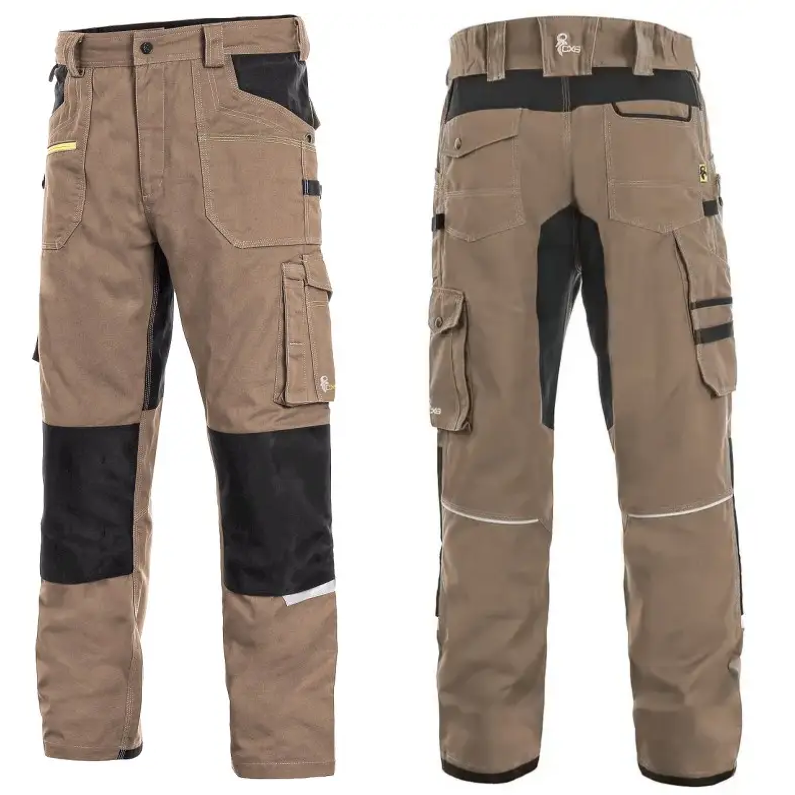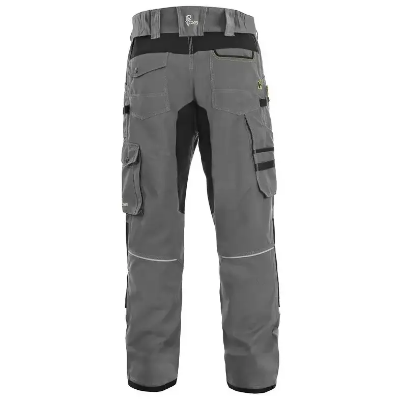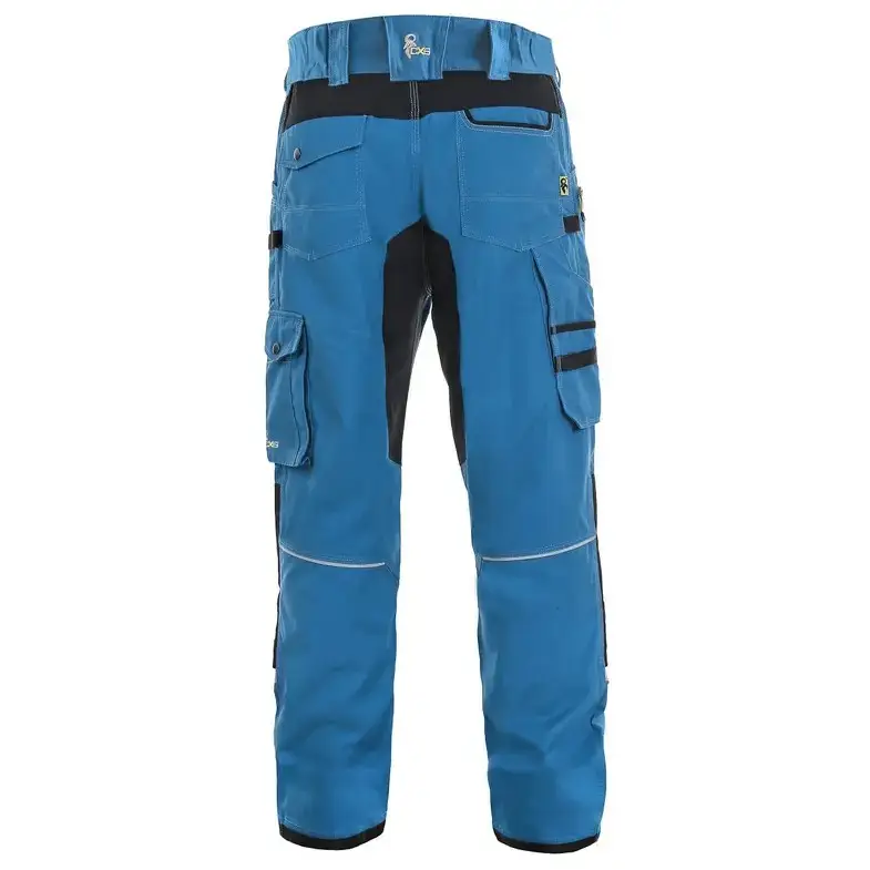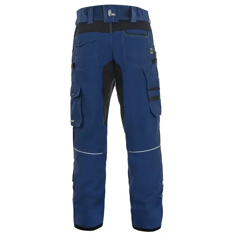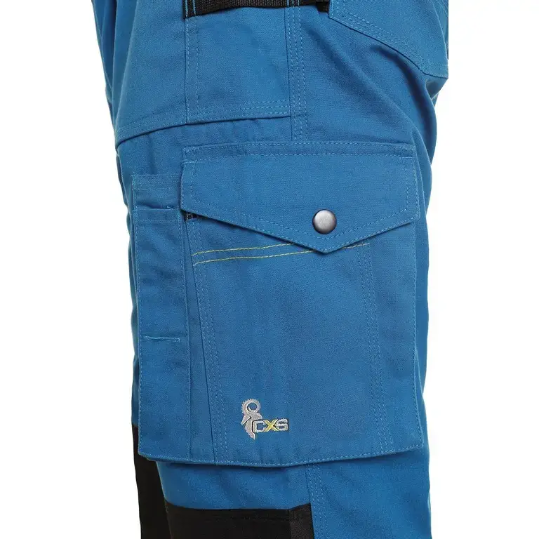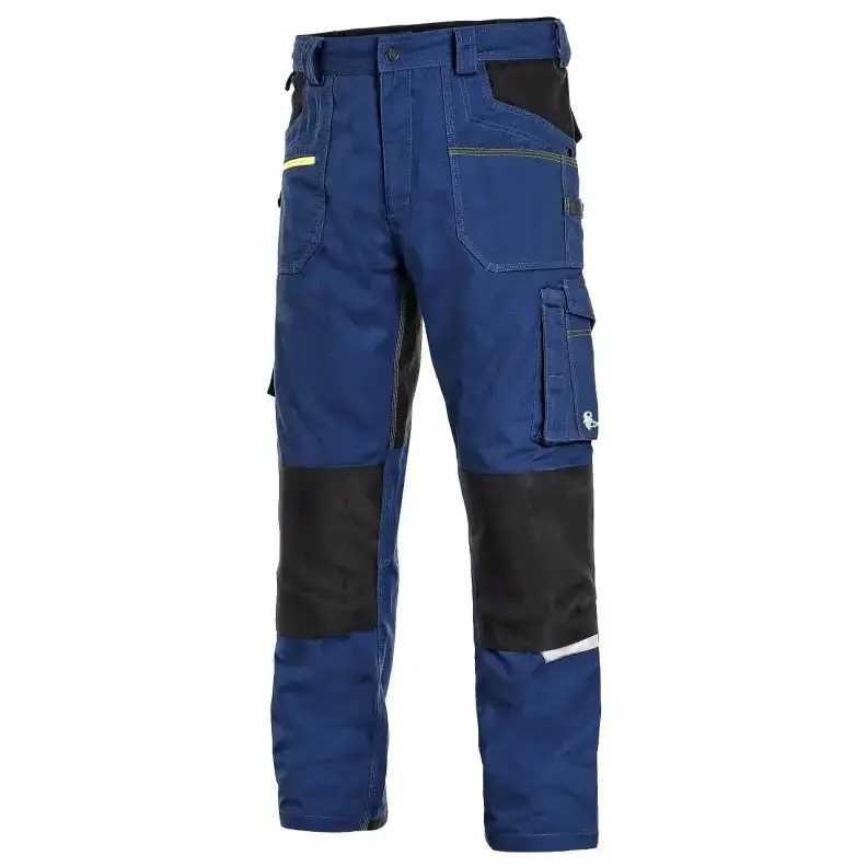 SPODNIE DO PASA CXS STRETCH. Funkcjonalne i komfortowe w noszeniu spodnie robocze. Wykonane z tkaniny stretch umożliwiającej swobodne poruszanie się. Spodnie sprawdzą się w różnorodnym środowisku roboczym. W kolekcji CXS STRETCH oprócz spodni do pasa występują również spodenki, ogrodniczki, bluza i kurtka, o które można uzupełnić odzież do pracy. Warianty kolorystyczne: kamuflaż-czarny (435), ciemnoszary-czarny (734), czerwono-czarny (260), biało-szary (109), beżowo-czarny (270), średnioniebiesko-czarny (440), ciemnoniebiesko - czarny (441), szaro-czarny (710). Rozmiar: 46-64, 46-68 (kolor 440 i 710). Materiał: 98% bawełna, 2% elastan, splot canvas, 250 g/m2. Konstrukcja: tkanina stretch zapewniająca swobodny ruch, wygodny fason z podwyższonym karczkiem z tyłu, zapięcie główne na zamek i napę, pas z pętelkami do paska, wielofunkcyjne kieszenie: dwie kieszenie tylne, jedna kryta klapą, dwie przednie kieszenie, jedna na zamek i przestrzenne kieszenie na nogawkach, dzięki którym najpotrzebniejsze rzeczy można mieć zawsze w zasięgu ręki, kolana i brzeg nogawek z tyłu wzmocniony poliestrem 600D odpornym na przetarcia i uszkodzenia mechaniczne, do spodni można stosować nakolanniki, elementy odblaskowe zwiększające bezpieczeństwo podczas pracy po zmroku lub w zacienionych miejscach, możliwość prostego przedłużenia spodni do wyższej sylwetki. Zastosowanie: inżynieria, budownictwo, przemysł lekki, motoryzacja, logistyka, magazyn, spedycja, garaż, konserwacja, montaż, rolnictwo, ogród, hobby.