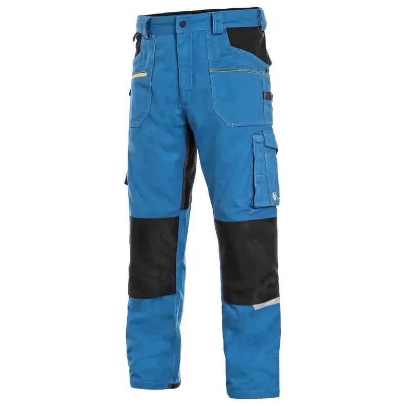 - KONSTRUKCJA: tkanina stretch zapewniająca swobodny ruch, wygodny fason z podwyższonym karczkiem z tyłu, zapięcie główne na zamek i napę, pas z pętelkami do paska, wielofunkcyjne kieszenie: dwie kieszenie tylne, jedna kryta klapą, dwie przednie kieszenie, jedna na zamek i przestrzenne kieszenie na nogawkach, dzięki którym najpotrzebniejsze rzeczy można mieć zawsze w zasięgu ręki, kolana i brzeg nogawek z tyłu wzmocniony poliestrem 600D odpornym na przetarcia i uszkodzenia mechaniczne, do spodni można stosować nakolanniki, elementy odblaskowe zwiększające bezpieczeństwo podczas pracy po zmroku lub w zacienionych miejscach, możliwość prostego przedłużenia spodni do wyższej sylwetki
