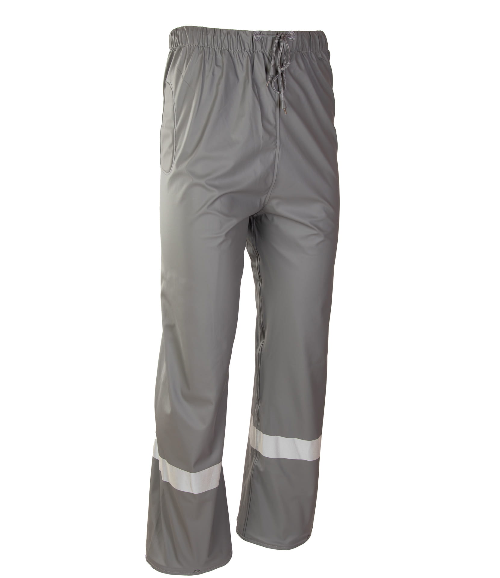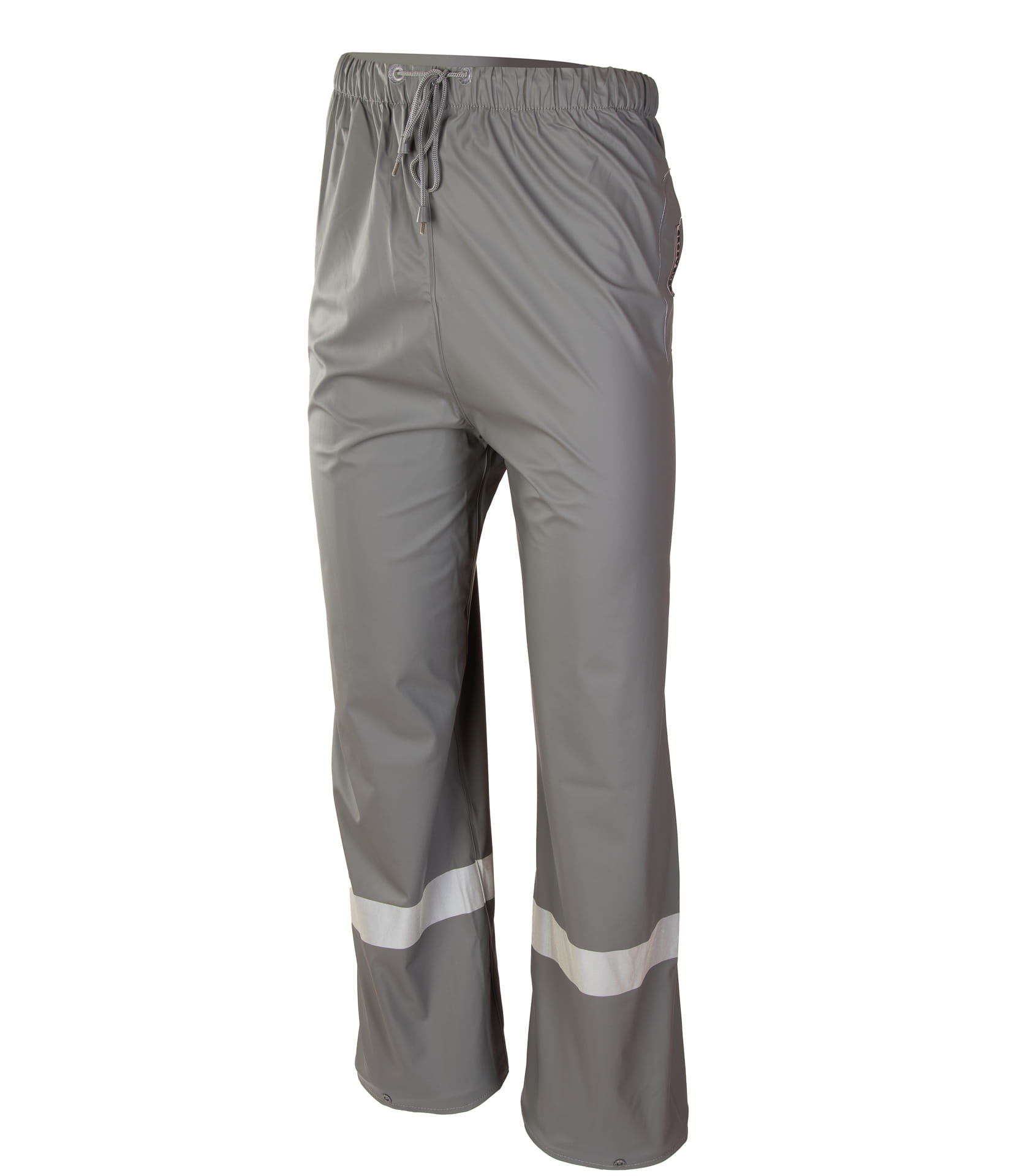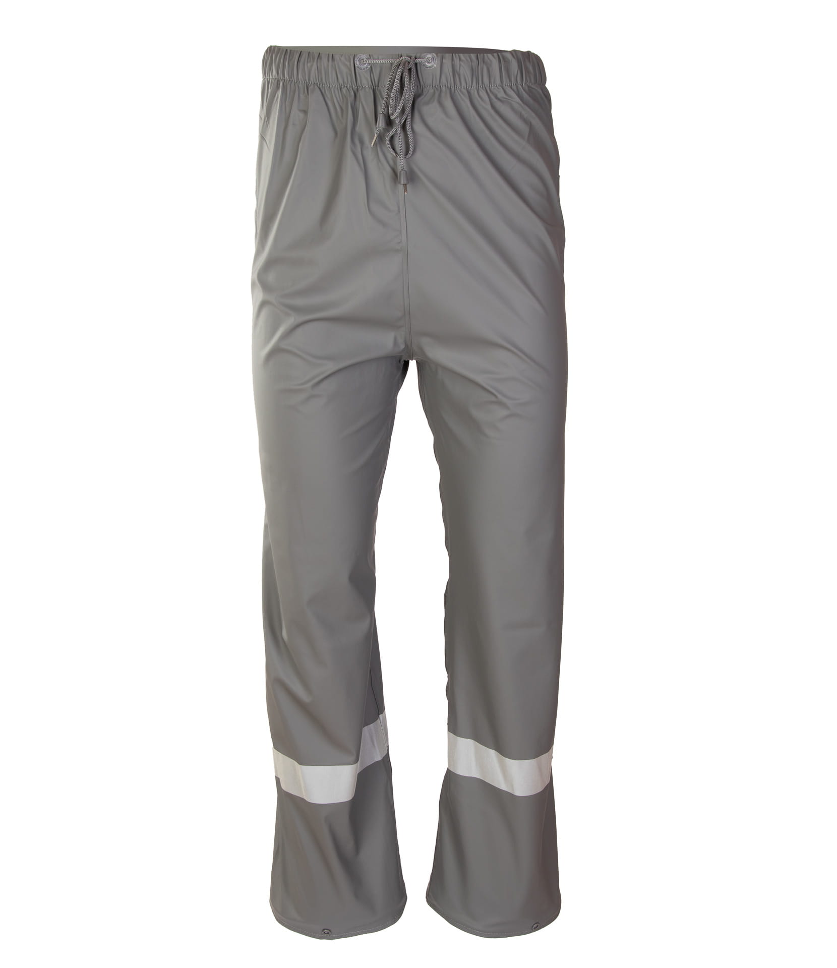 SPODNIE DO PASA POLSTAR GROSVENOR PU D223 STALOWE. Uniwersalne spodnie przeciwdeszczowe z pasami odblaskowymi zwiększającymi widoczność w słabym świetle. Kolor: stalowy. Rozmiar: S-3XL. Materiał: 100% poliuretan, grubość 0,4mm. Konstrukcja: ściągacz w pasie i w dole nogawek, kieszenie przelotowe z przodu oraz poziome pasy odblaskowe na nogawkach. Zastosowanie: w każdej aktywności na zewnątrz, w pracy jak i użytkowaniu codziennym.