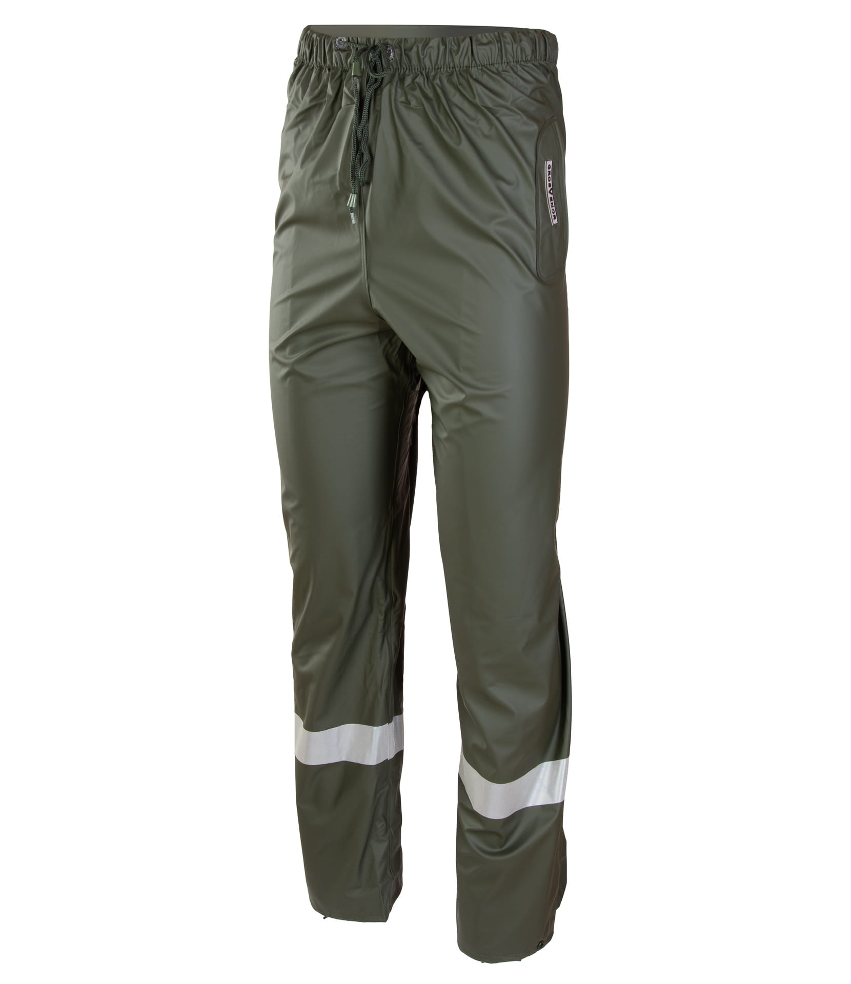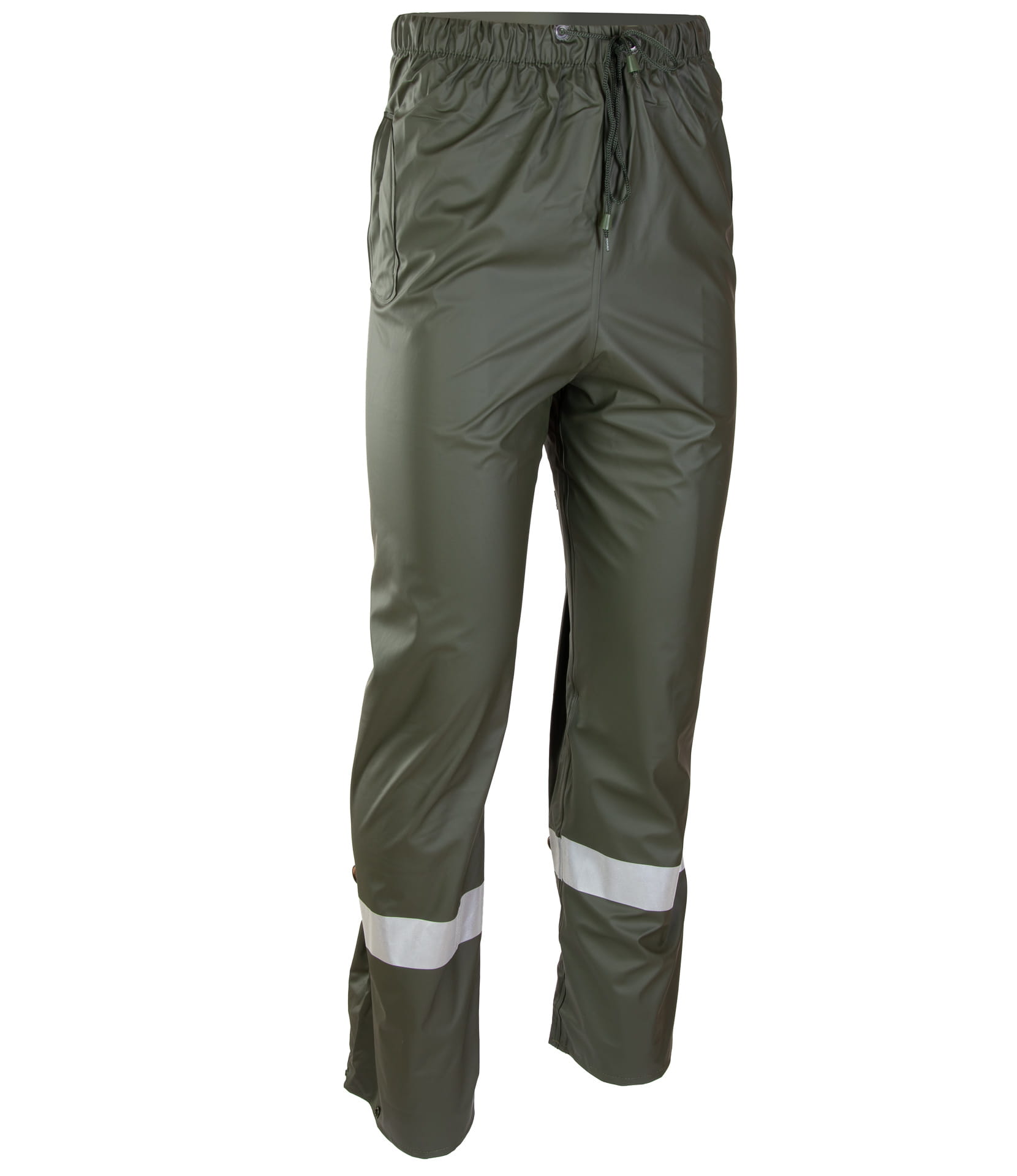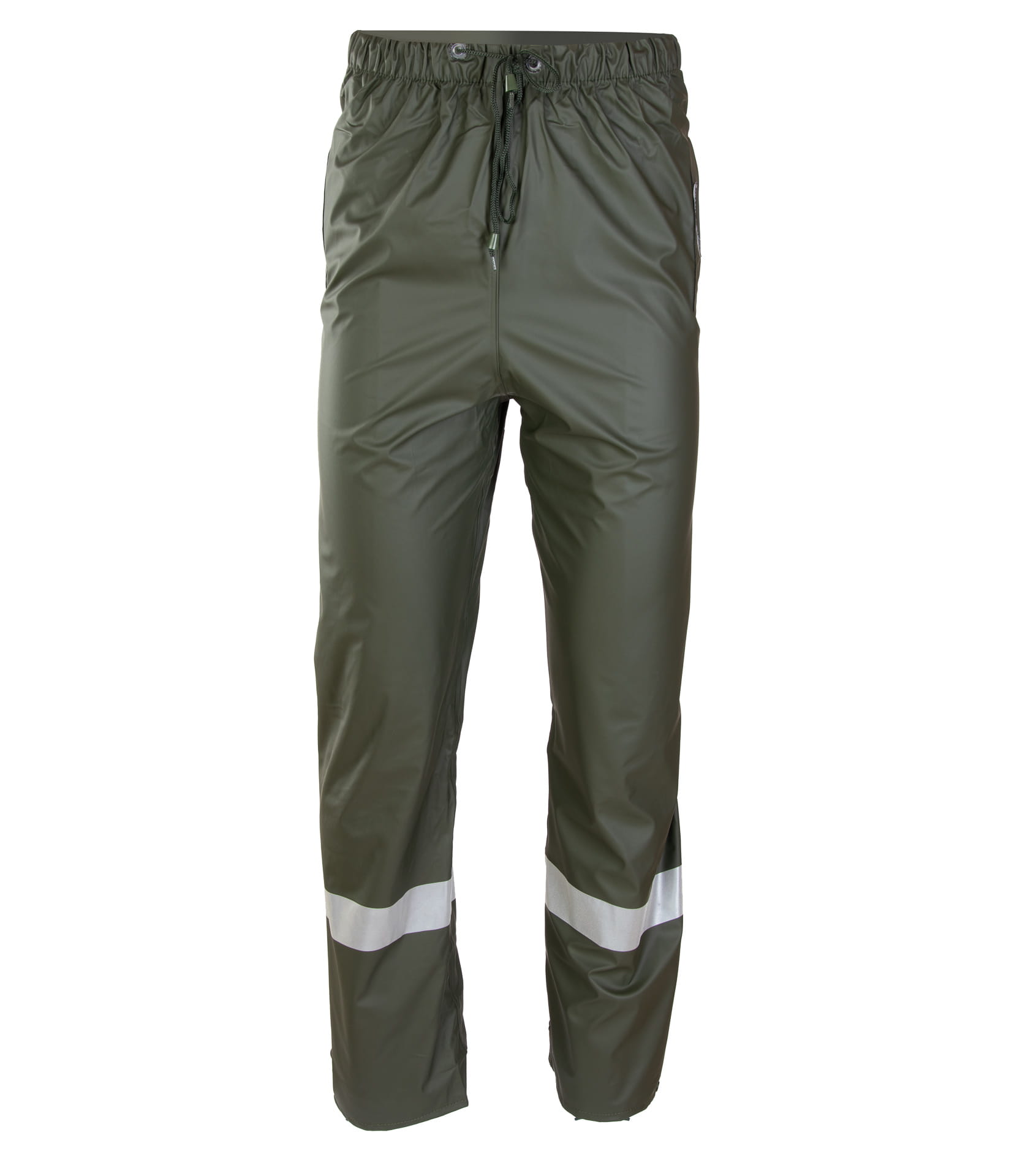 SPODNIE DO PASA POLSTAR GROSVENOR PU D223 ZIELONE. Uniwersalne spodnie przeciwdeszczowe z pasami odblaskowymi zwiększającymi widoczność w słabym świetle. Kolor: zielony. Rozmiar: S-3XL. Materiał: 100% poliuretan, grubość 0,4mm. Konstrukcja: ściągacz w pasie i w dole nogawek, kieszenie przelotowe z przodu oraz poziome pasy odblaskowe na nogawkach. Zastosowanie: w każdej aktywności na zewnątrz, w pracy jak i użytkowaniu codziennym.