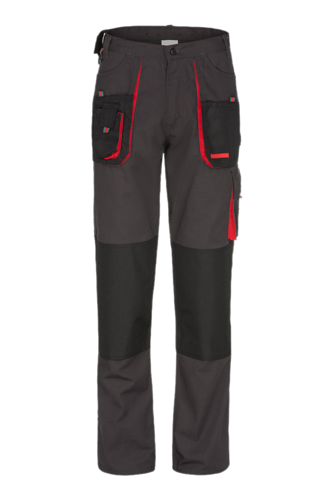SPODNIE DO PASA MAPER 260. Uniwersalne spodnie robocze z kieszeniami na nakolanniki. Kolor: ciemnoszary z kontrastowymi pomarańczowymi wstawkami. Rozmiar: 48-62. Materiał: 65% poliester, 35% bawełna, 260 g/m2. Konstrukcja: solidnie odszyte, bardzo praktyczne spodnie do pasa, posiadają wielofunkcyjne kieszenie: kieszeń na telefon lub okulary zapinana na rzep, trzy różnej wielkości kieszenie zapinane na rzep, dwie głębokie kieszenie bez zapięcia plus zawieszka na klucze, z tyłu spodni dwie kieszenie zapinane na rzep, regulacja w pasie na guziki, rozporek na suwak metalowy, wzmocnienia na kolanach i w miejscach narażonych na zniszczenie z czarnego mocnego materiału, kieszenie na wkładki nakolannikowe. Zastosowanie: branża budowlana, montażowo-instalacyjna, magazyn, prace porządkowe, warsztat, hobby.