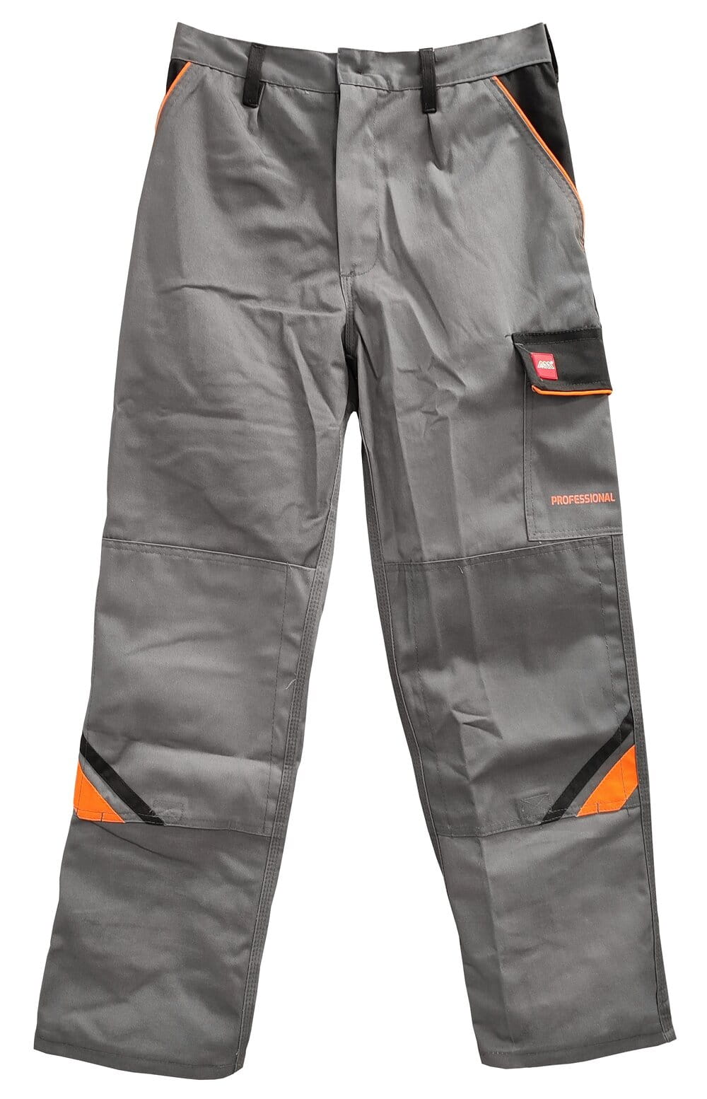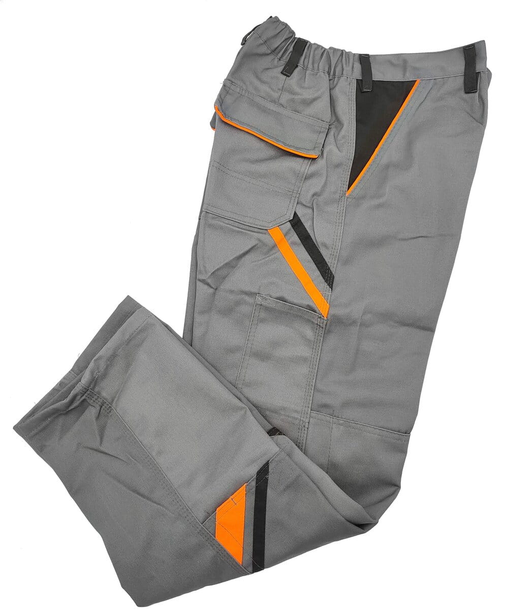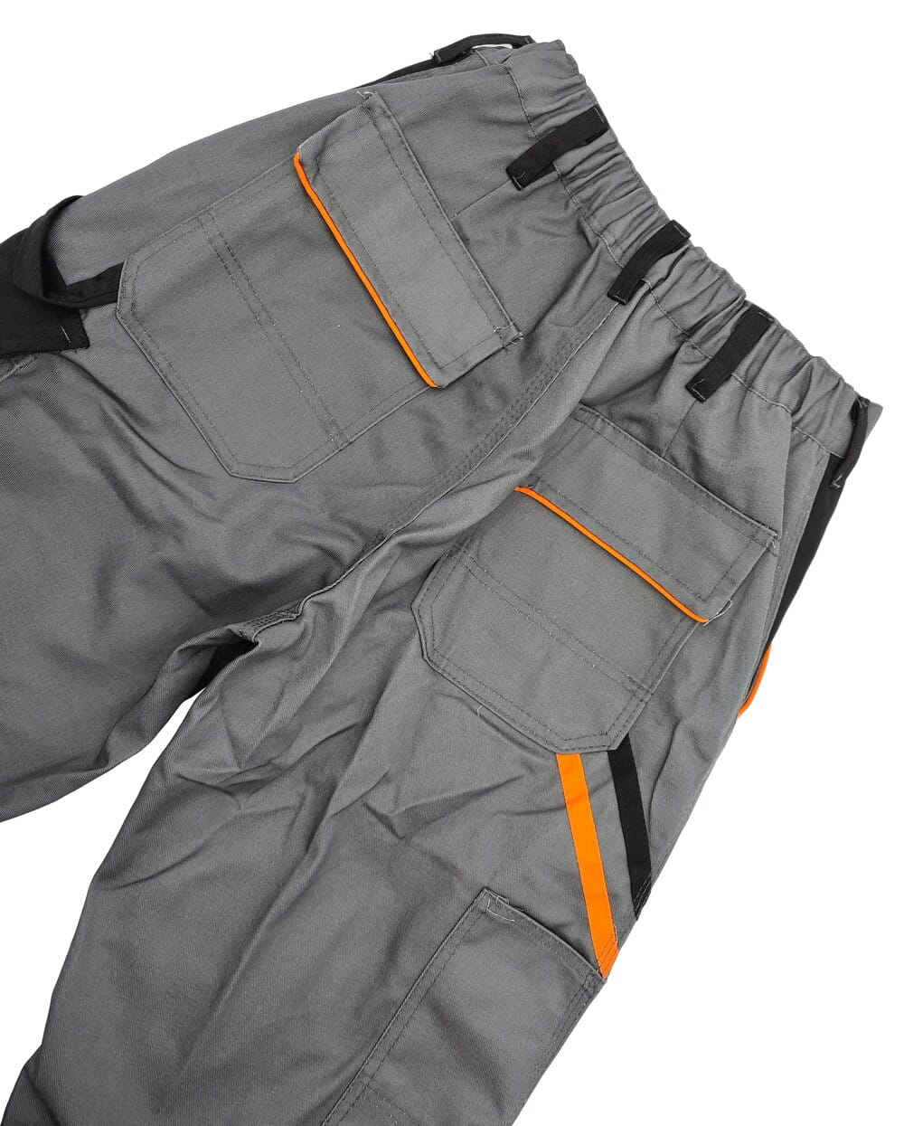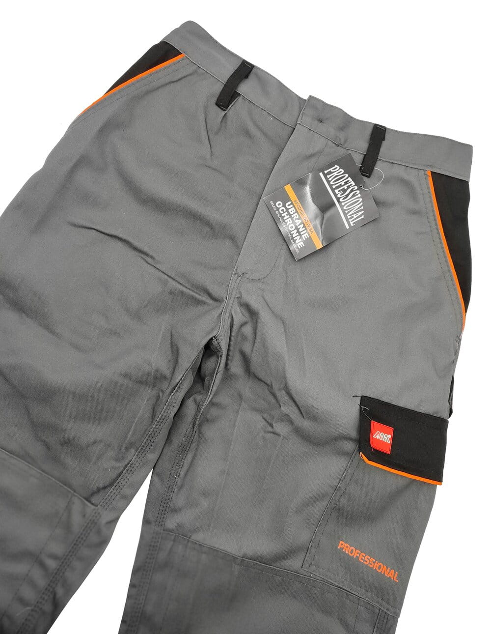 SPODNIE DO PASA ART.MAS PROFESSIONAL GREY. Rewelacyjne spodnie robocze w bardzo atrakcyjnym wzornictwie, funkcjonalne i bardzo wygodne. Kolor: stalowo-czarny z pomarańczowymi wstawkami. Rozmiar: 24-114. Materiał: 65% poliester, 35% bawełna o wysokiej gramaturze 320+/-10 g/m2 i zwartym splocie. Konstrukcja: solidne odszycie, potrójne i podwójne szwy oraz wzmacniające ryglówki w miejscach szczególnie narażonych na uszkodzenia, zapinanie z przodu na guzik i suwak, w pasie z tyłu wszyta gumka ściągająca pas, na kolanach kieszenie pozwalające na zastosowanie wymiennych nakolanników, wzmocnienia na tylnych kieszeniach. Zastosowanie: dla budowlańców, branży montażowo-instalacyjnej, do prac magazynowych, porządkowych, warsztatowych.