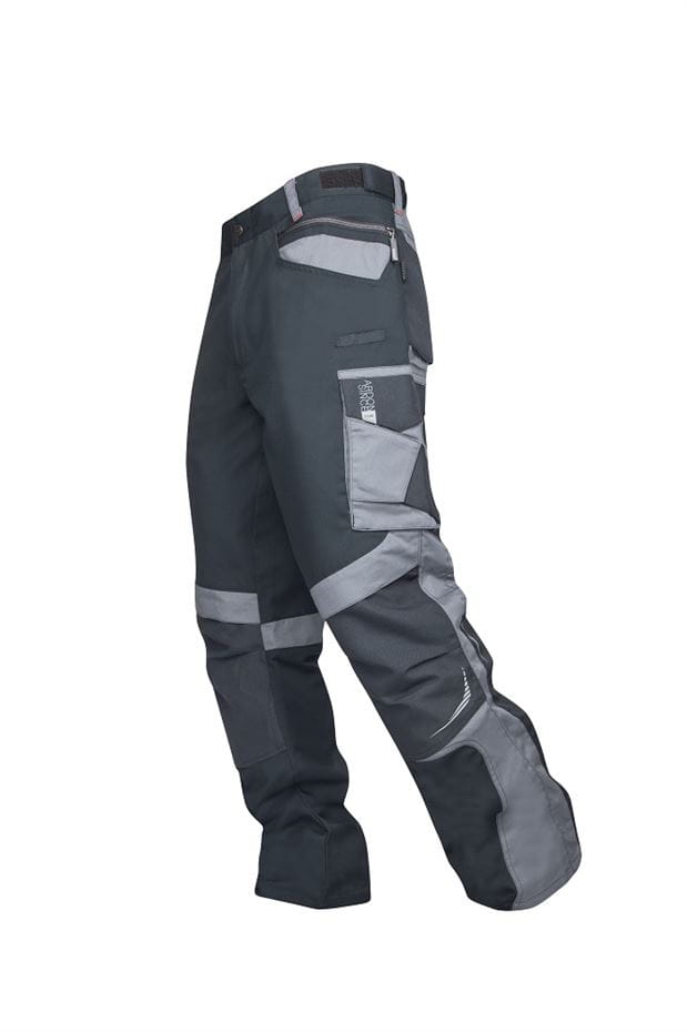 - KONSTRUKCJA: spodnie do pasa, główne zapięcie na suwak kryty listwą i guzik, elastyczny kołnierz w pasie zapewniający komfortowe dopasowanie obwodu pasa, praktyczne kieszenie - dwie przednie przelotowe, jedna kieszeń na monety z suwakiem, tylne kieszenie z materiału CORDURA® (jedna przelotowa, druga z plisą na rzep), na lewej nogawce listewkowa kieszeń na długopisy i nóż łamany, wielofunkcyjna kieszeń miechowa wzmocniona materiałem CORDURA®, możliwość włożenia śrubokrętu, miarki składanej, łamanego noża lub ołówka stolarskiego, nadruki odblaskowe w części przedniej i tylnej zwiększające widoczność, podwójny materiał na kolanach z materiału CORDURA®, kieszenie na nakolanniki (odpowiednie do zastosowania z nakolannikami J3800)