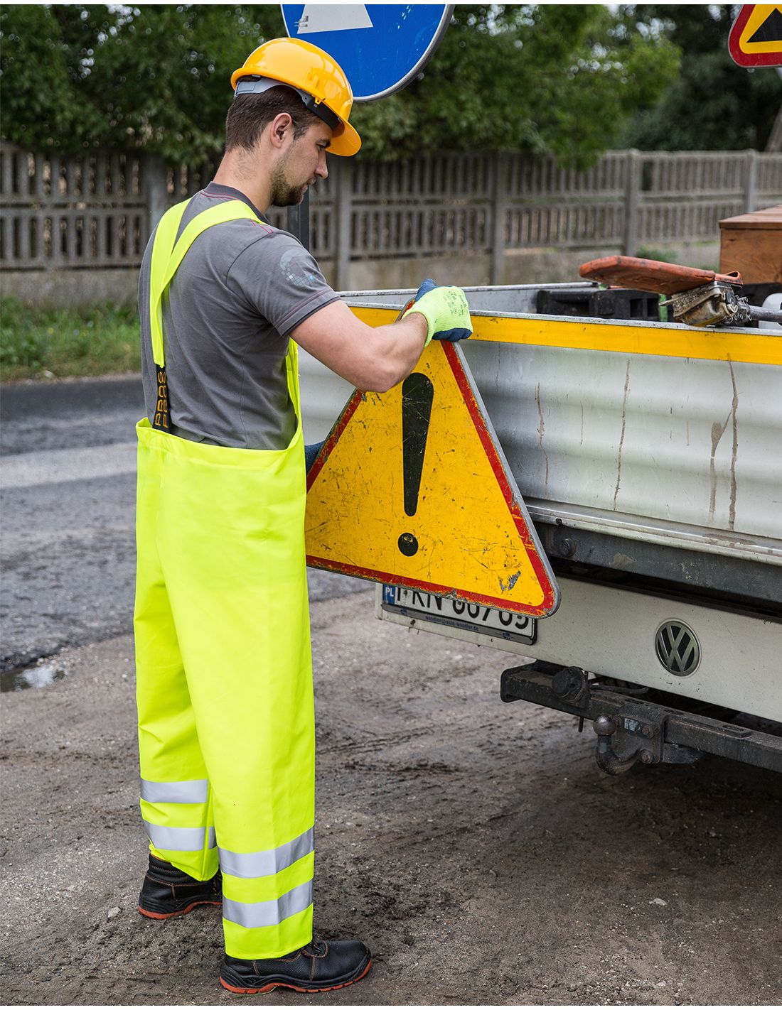 | WŁAŚCIWOŚCI UŻYTKOWE | Ostrzegawcze spodnie z pasami odblaskowymi |