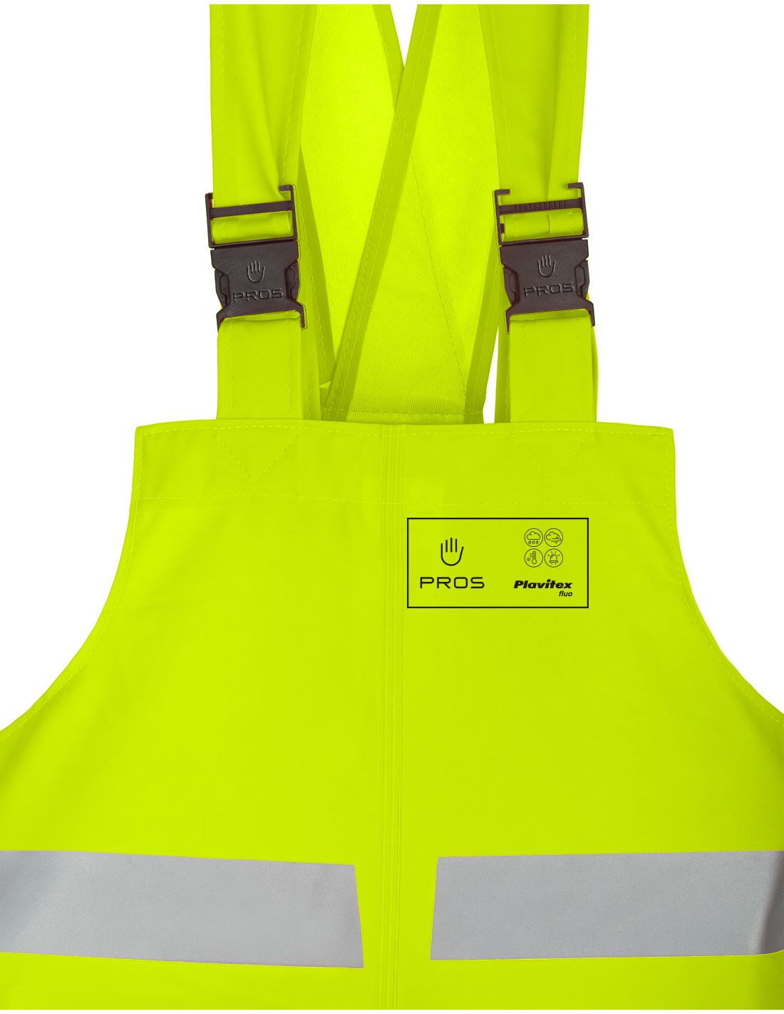 SPODNIE OGRODNICZKI OSTRZEGAWCZE WODOOCHRONNE PROS 1011. Wodoodporne, ostrzegawcze ogrodniczki z taśmami odblaskowymi o intensywnej widzialności do użytku zawodowego. Stosowana w miejscach i sytuacjach, w których obecność osoby musi być wizualnie sygnalizowana zarówno w dzień jak i w nocy. Kolor: żółty fluo. Rozmiar: XS/48-4XL/62. Materiał: PLAVITEX FLUO - materiał na podkładzie poliestrowym, jednostronnie powlekany PVC. Konstrukcja: funkcjonalne, regulowane szelki z szeroką gumą z tyłu, produkt wykonany techniką obustronnego zgrzewania, co skutecznie zwiększa wytrzymałość szwów, poziome taśmy odblaskowe na nogawkach poprawiają bezpieczeństwo użytkownika. Zastosowanie: w przemyśle, drogownictwie, budownictwie, usługach, rafinerie, ratownictwo górnicze, porty, platformy wiertnicze, szyby wydobywcze.